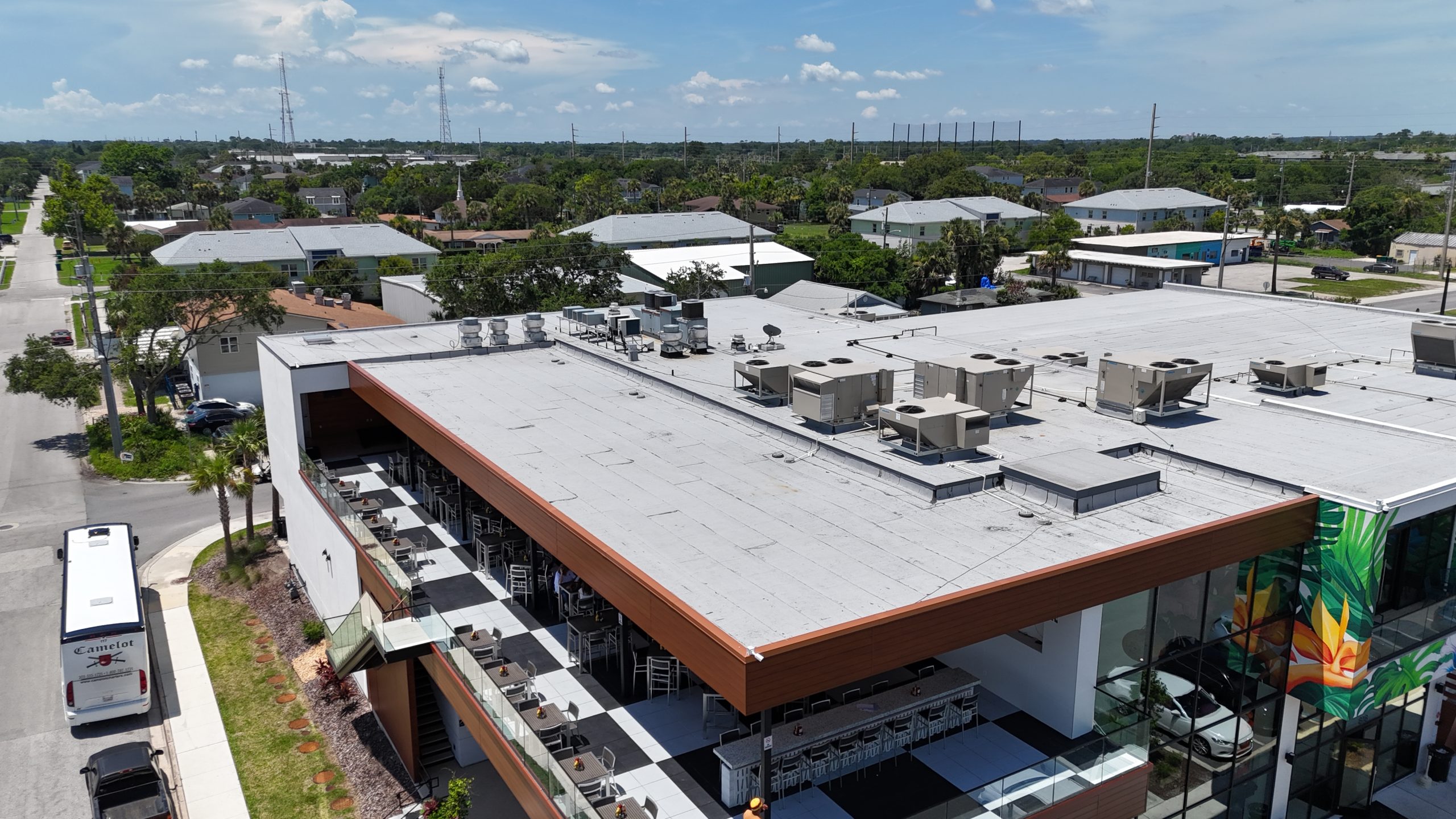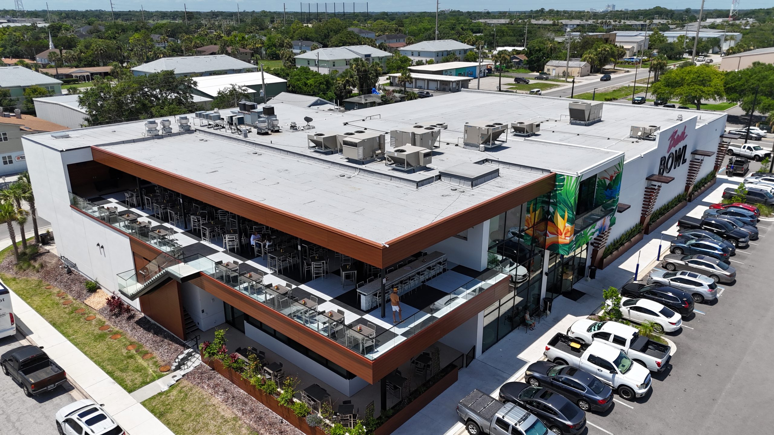 Childers Roofing and Sheet Metal completed the roofing for Beach Bowl in Jacksonville Beach, FL, a new construction project finished in 2023. The work featured a 29,000-square-foot built-up modified roof system with pavers on the patio, designed to deliver long-term durability, weather resistance, and functionality for the high-traffic entertainment facility.