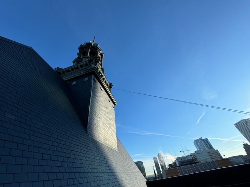 F.J.A. Christiansen recently completed a high-elevation slate shingle repair project at the historic Milwaukee City Hall. Due to the building’s challenging access points, traditional methods such as boom lifts or crane baskets were not feasible. F.J.A.’s Service Foreman alongside a team of SPRAT III Elevated Safety-trained professionals, utilized Bosun Chair rope access techniques to reach the damaged slate. Using a series of ropes, pulleys, and a 40:1 winch system anchored to the building structure, the team safely raised and lowered the Service Foreman to complete the repairs. The project required ten different setup areas and was successfully completed in just one day.