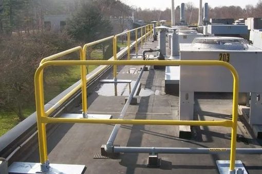 Guardrails Guardrail systems use factory-built modular rails and bases to create permanent, passive fall protection at roof edges and around openings. Available as non-penetrating bases for membrane or built-up roofs, and surface-mounted configurations where mechanical fastening is preferred, and align with OSHA Walking-Working Surfaces for long-term safety.